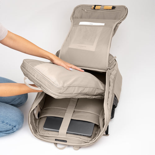 - laptop compartment with external and internal access: 48 cm x 33 cm (e.g., 16" MacBook)