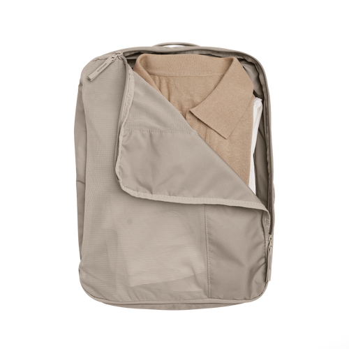 - Extra compressible packing cube made from mesh and recycled polyester with carrying handle: 20 cm x 31 cm x 7.5-12 cm (H x W x D)