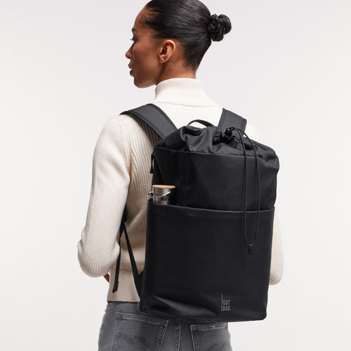 Your lightweight everyday backpack with drawstring closure and additional zipper, separate laptop compartment, and up to 29 L of flexible volume. Made with recycled Ocean Impact Plastic.