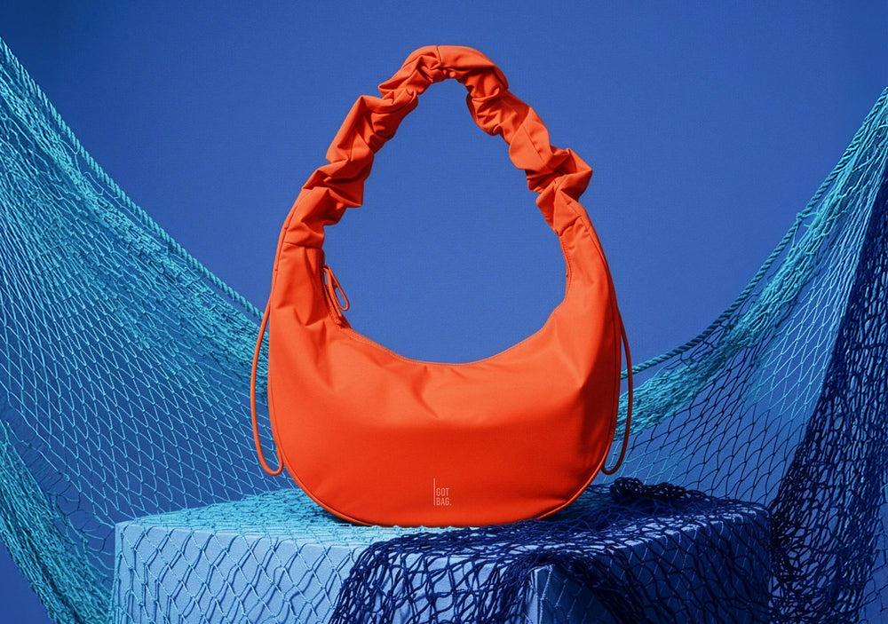 The material stands out with an exceptionally smooth feel and brilliant colour depth. It is sourced from discarded fishing nets through our partner in Taiwan. Thanks to chemical recycling, the yarn matches the quality of new nylon while remaining lightweight and durable. This is the main fabric your new favourite bag is crafted from.