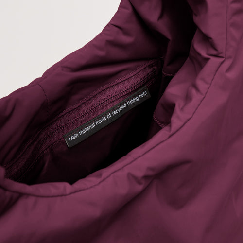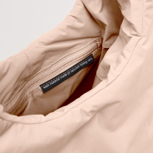 - Materiale principale RE:NYNET® realizzato in nylon riciclato da reti da pesca, materiale interno e cerniere in nylon riciclato, imbottitura in poliestere riciclato