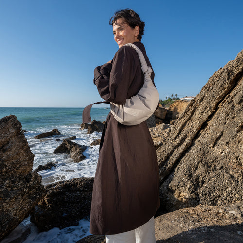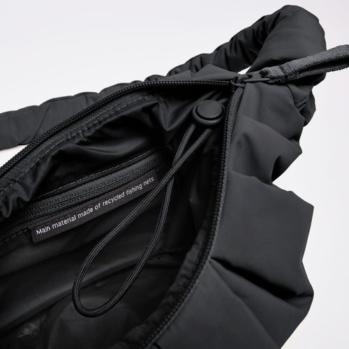 • Materiale principale RE:NYNET® realizzato con reti da pesca riciclate, fodera interna e cerniera in nylon riciclato, cerniera interna in PA riciclato, cinghie in RE:NYNET®, imbottitura in poliestere riciclato